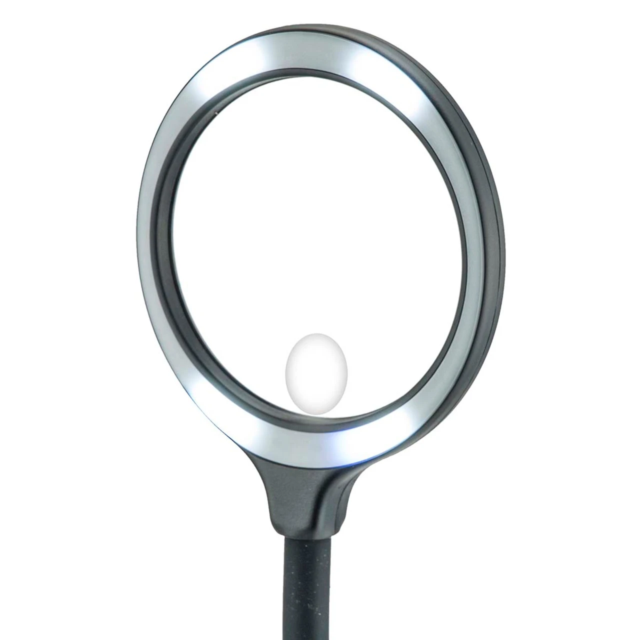 Enjoy brighter, more even lighting with this magnifying desk lamp. Designed with four super-bright COB LEDs and a light-diffusing cover, this advanced lamp eliminates LED hot spots for more even light distribution and better color definition. The adjustable magnifier offers 2X magnification with a 5X power spot lens to see the finest details. Includes power adapter. 6½ x 9 x 6″ (16.5 x 22.9 x 15.2cm).
