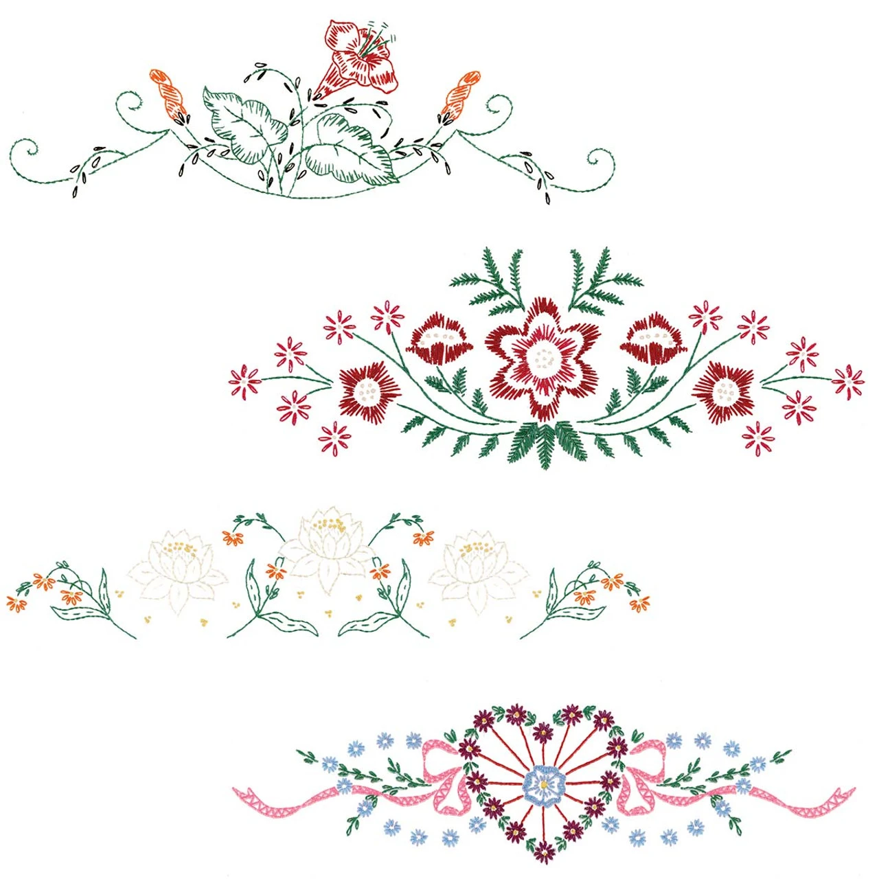 Create a beautiful collection of bedroom linens with this pillowcase set including 4 pairs of beautiful floral pillowcase designs. The Herrschners Revival Collection offers a selection of vintage needlework pillowcase designs that have been preserved from the archive and re-created for modern stitchers. The beautiful floral designs are stamped for cross-stitch or embroidery on white cotton/polyester pillowcases with a perle edge. There are 4 pillowcase pairs in the set (8 pillowcases total, 2 of each design shown), and each pillowcase is pre-finished and ready for stitching. Simply follow the easy-to-read chart and instructions to stitch the pillowcases in the vintage colors of the Craftways Revival Floss Collection to create instant family heirlooms. Floss and needle are not included. Each pillowcase is standard/queen size measuring 20 x 30″ (51 x 76cm). Imported.