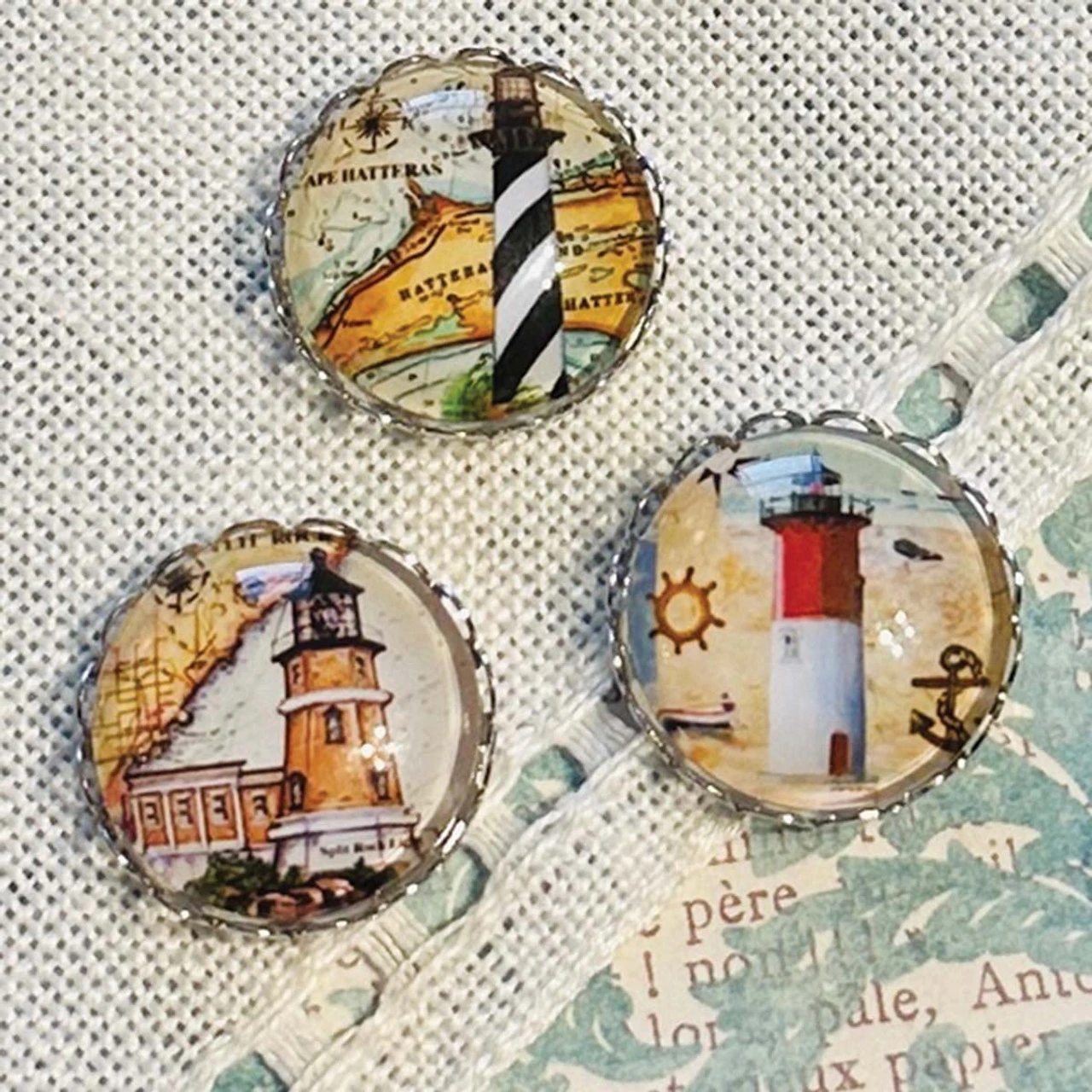 Never lose your needle again with these cute little needle minders. These scenic little needle minders are decorated with little lighthouses and coastal views that make each a nautical work of art. You’ll feel like you’re stitching at the beach! The set makes great stocking stuffers for stitchers—or yourself! Each ¾” (2cm) needle minder has a metal frame and a strong backing magnet to securely hold your needle between stitching, preventing the needle from getting lost. Designs vary.